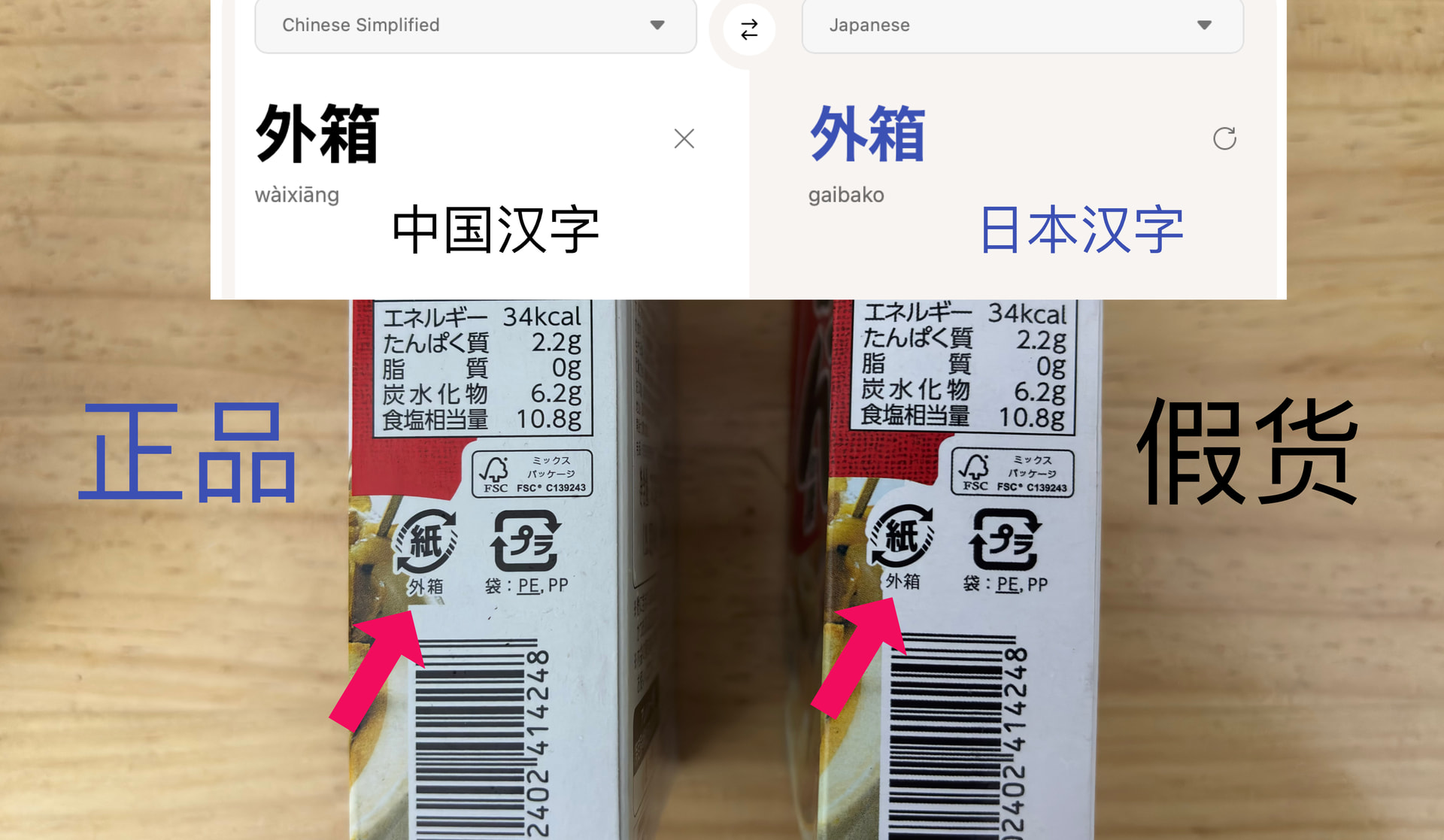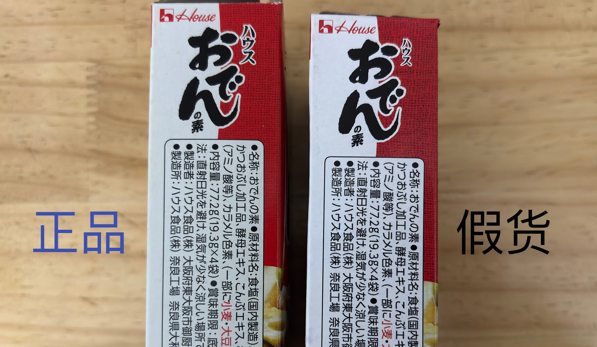 销量靠前的,居然,卖的是假货。「锦绵瑟」这家店只卖好侍牌关东煮料包一种产品。货到手,粗一看没什么问题,细看包装不对劲,字体很模糊,颗粒感很重,是扫描图。再对比正品,发现图案和颜色都不对,「纸」标外箱的「外」字用的中国汉字写法,造假手段粗糙。 联系客服退款,把假货销毁。举报投诉也没什么用,店依旧在卖,要小心留意这种卖单一品类的店。